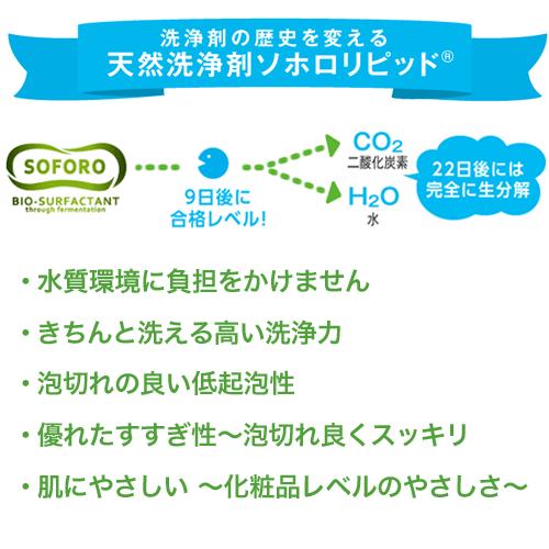 天然洗浄剤「ソホロリピッド」と食品成分のみ ~100%非石油系~