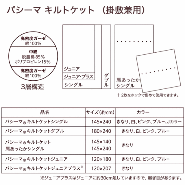 パシーマ Jカラー キルトケット シングル